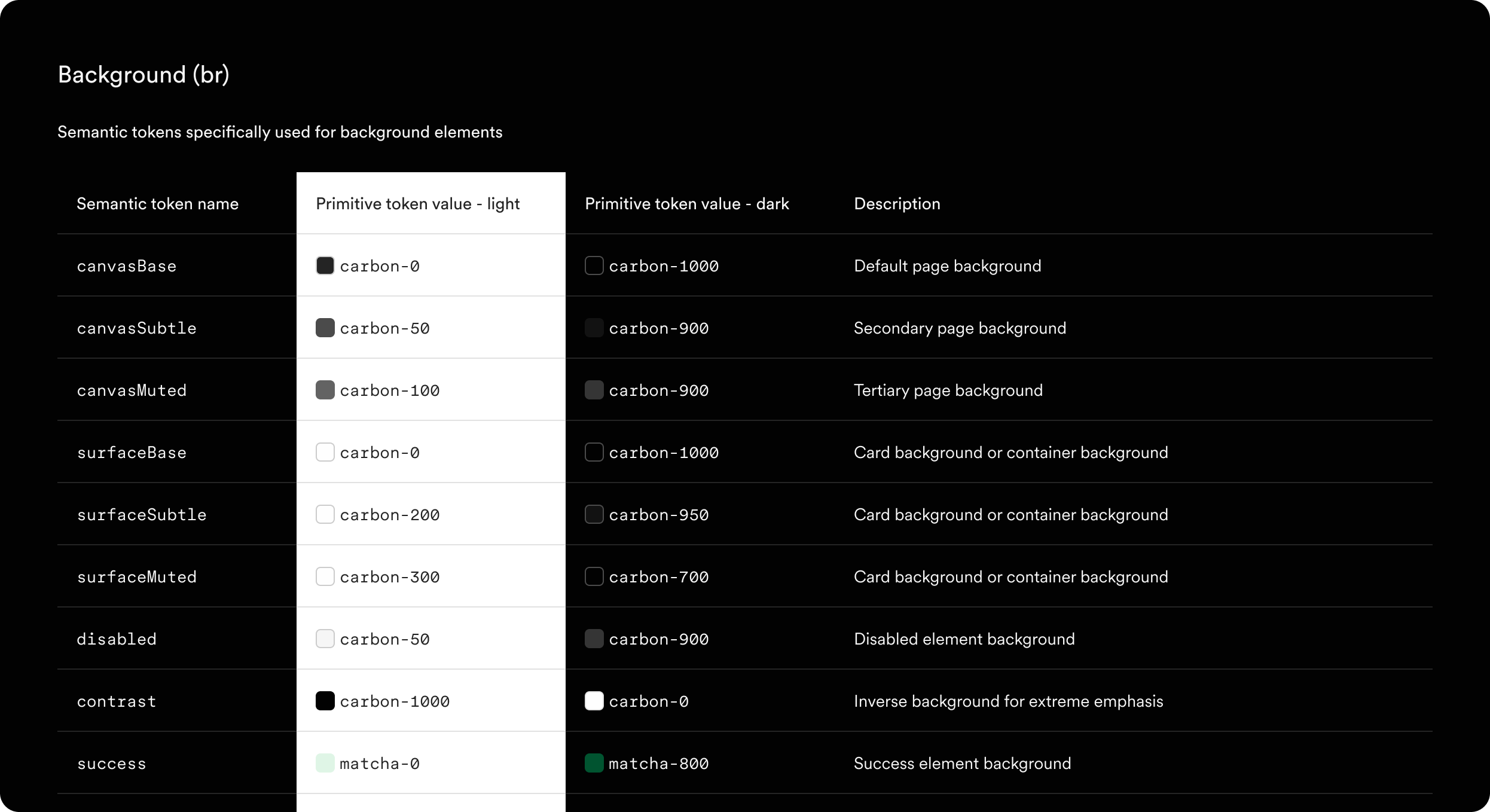 To make this transition smoother, we created a token-based color system, implemented using a combination of Tailwind CSS and CSS variables.